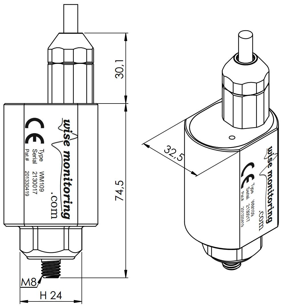 The WM109 vibration sensor measures vibration, providing displacement, speed and acceleration values and their spectral analysis for equipment online protection and condition monitoring.