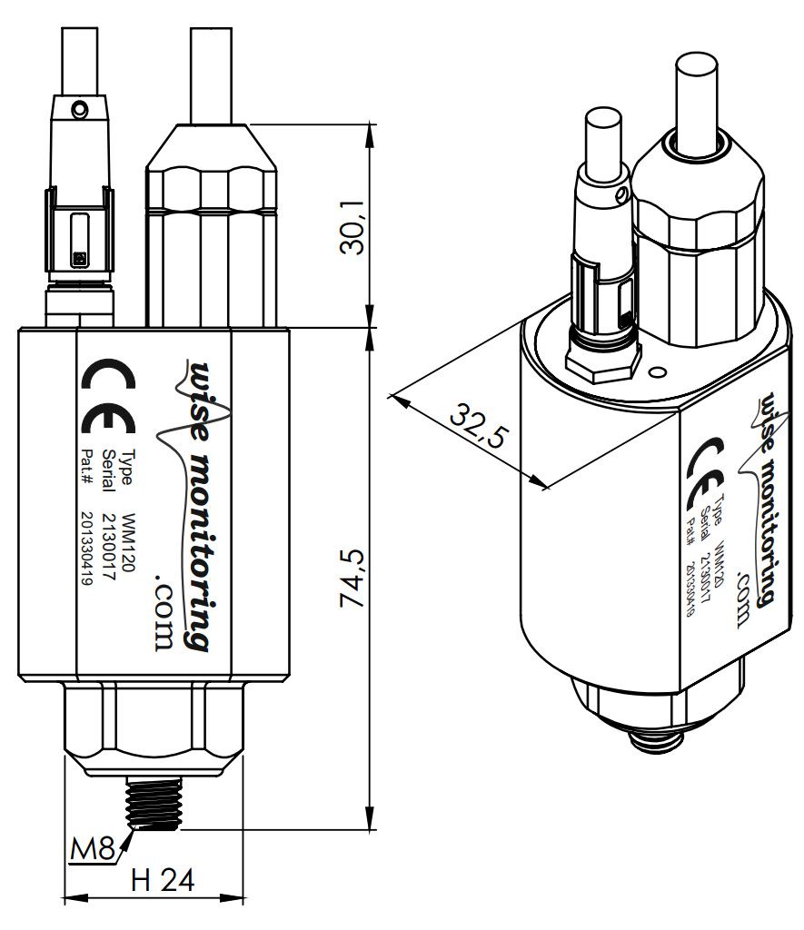 The WM120 vibration sensor measures vibration, providing displacement, speed and acceleration values and their spectral analysis and manage two inputs and two outputs for equipment online protection and condition monitoring.