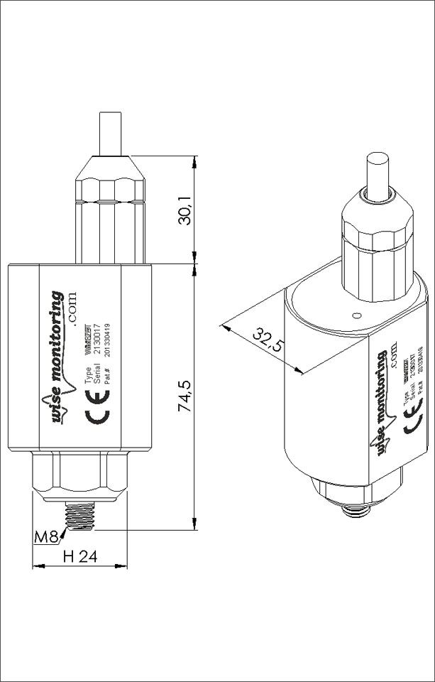 The WM309 vibration and temperature sensor measures temperature and three axis vibration, providing displacement, speed and acceleration values and their spectral analysis for equipment online protection and condition monitoring.